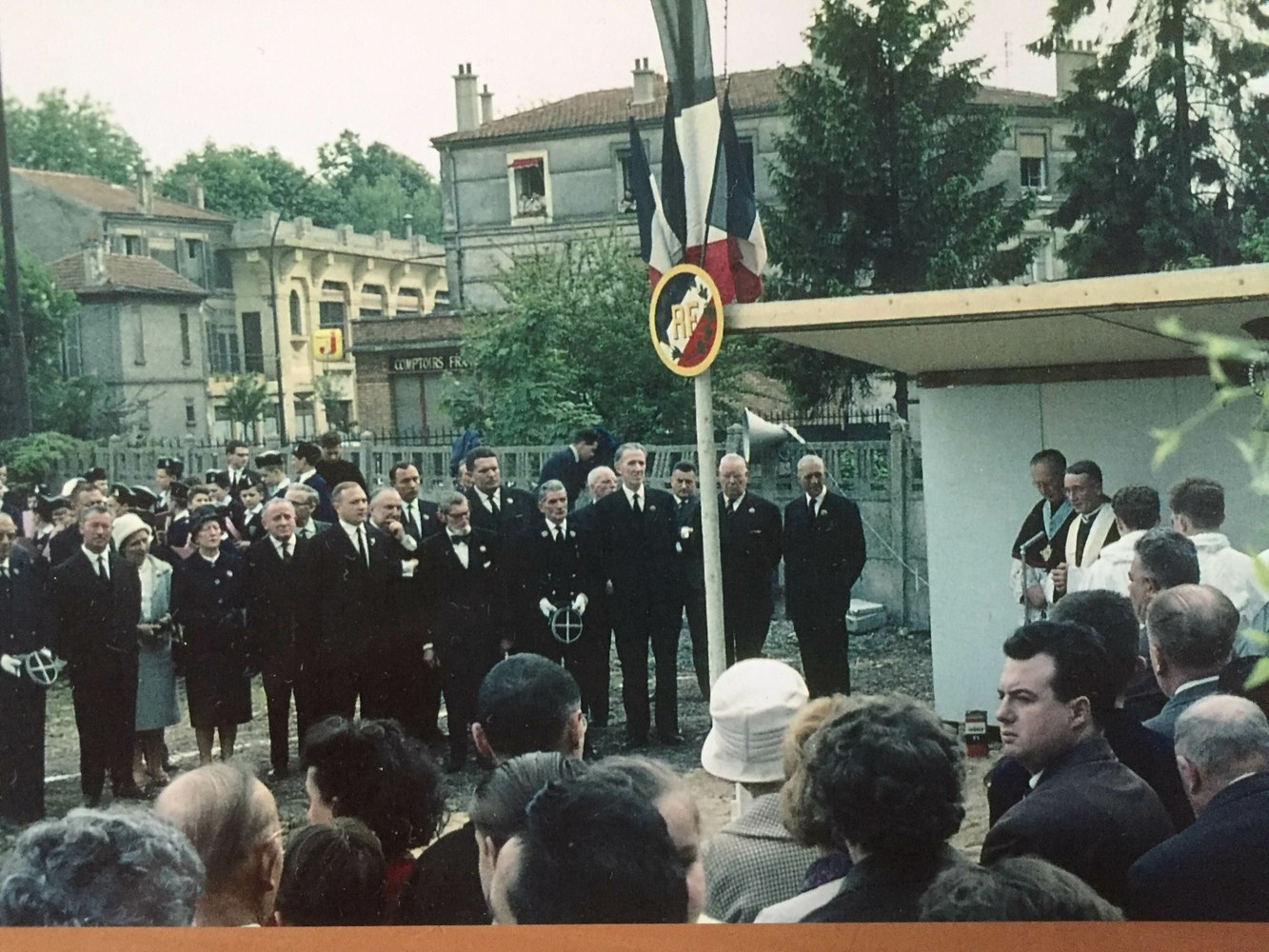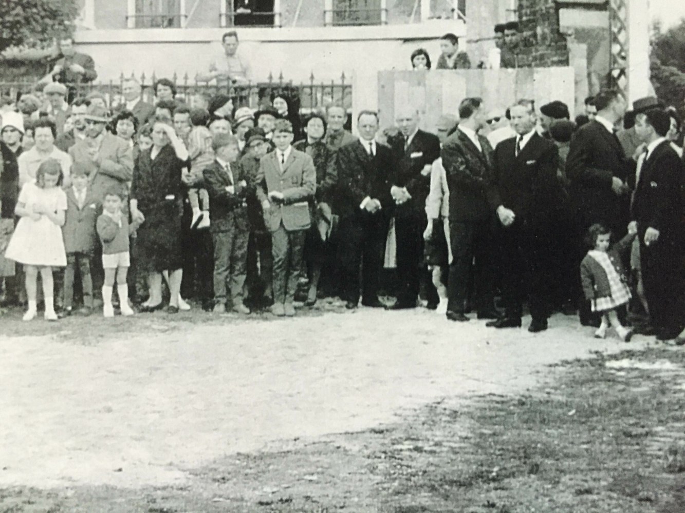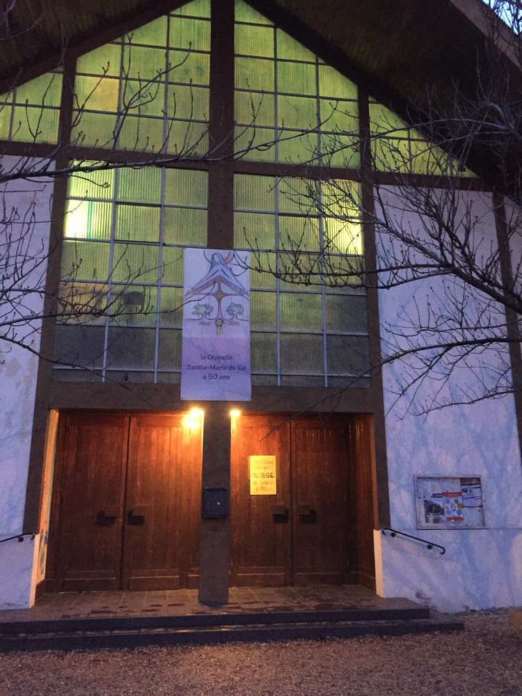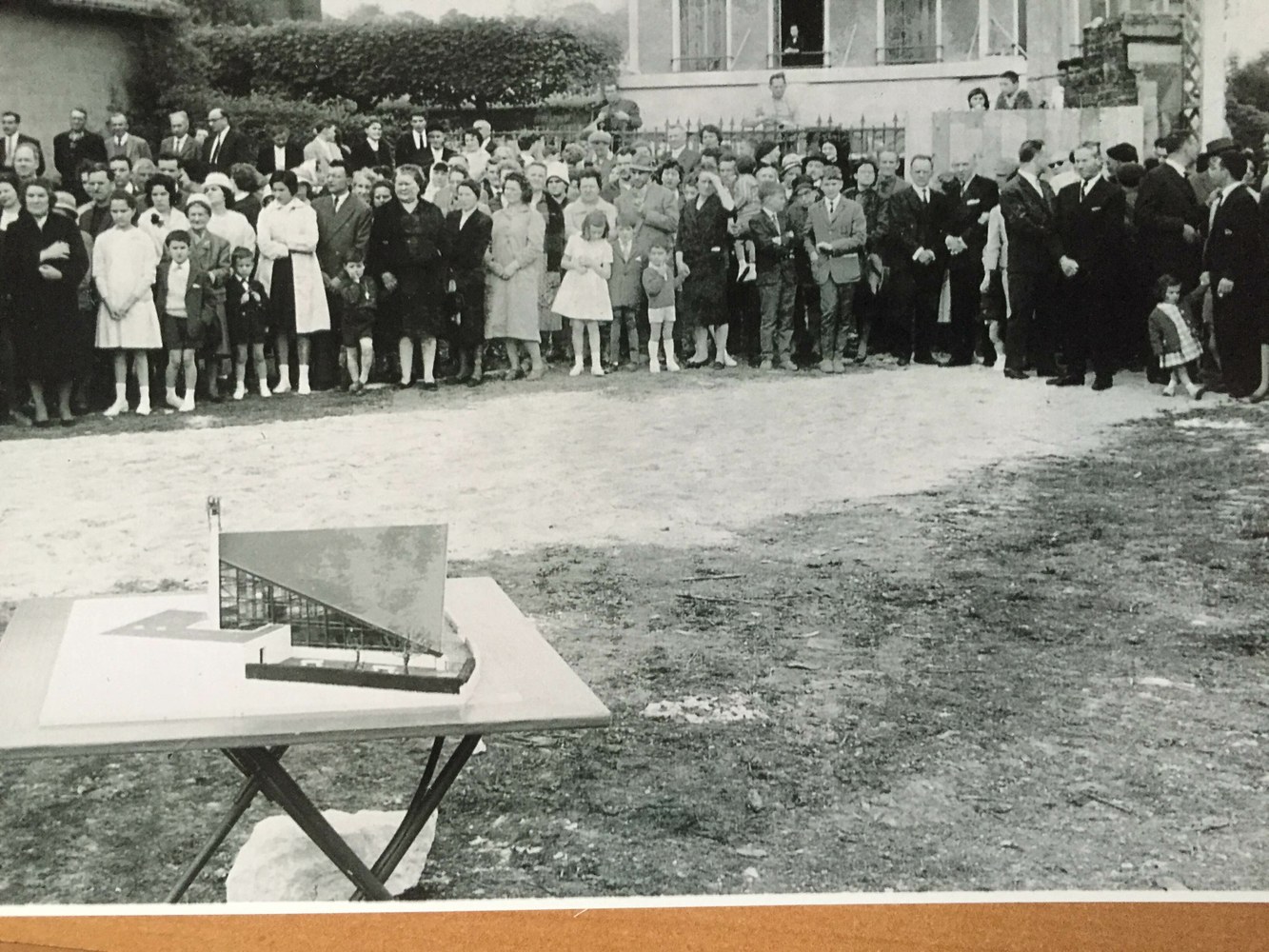 "Pose de la première pierre de la chapelle Notre-Dame du Val - le 26 mai 1963."