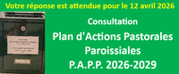 Il y a quelques années, notre paroisse Saint-Saturnin avait construit un Plan d'Actions Pastorales Paroissiales pour la période 2022-2025. L'Équipe d'Animation Paroissiale (EAP) a travaillé à la préparation d'un plan d'actions pour les trois prochaines années. Cette préparation a abouti à un projet sur lequel tous les paroissiens sont invités à donner leur avis avant que ce plan ne soit adopté.